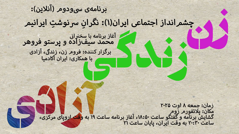 جمعه ۸ اوت ۲۰۲۵ در برنامهای با موضوع «چشمانداز اجتماعی ایران(۱): نگرانِ سرنوشت ایرانیم» با