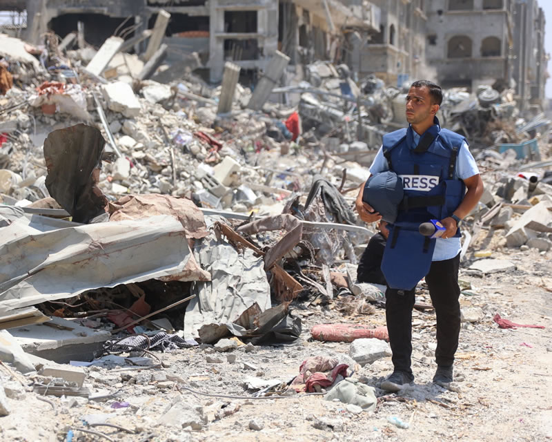 «انس الشریف»، خبرنگار شبکه الجزیره، شامگاه یکشنبه در حمله هوایی اسرائیل به چادر خبرنگاران در نزدیکی بیمارستان الشفا در شهر غزه کشته شد. این حمله، که به گفته الجزیره هفت کشته بر جای گذاشت، جان چندین خبرنگار دیگر از جمله «محمد قریقه» خبرنگار این شبکه و فیلمبرداران «ابراهیم زاهر»، «محمد نوفل» و «معمن علیوه» را نیز گرفت.