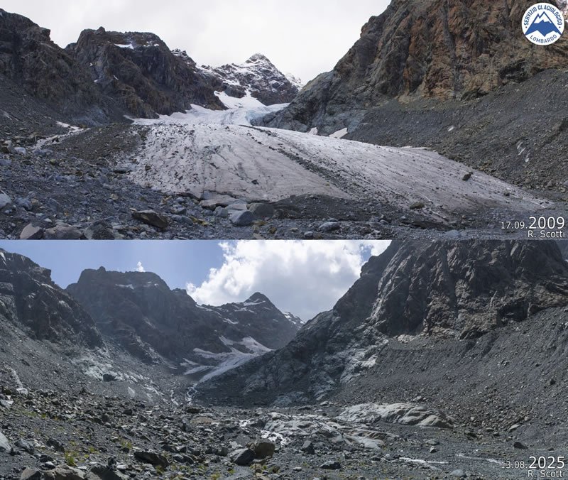 بر اساس گزارش خدمات یخچالشناسی لومباردی، آلپ به یک «نقطه داغ اقلیمی» تبدیل شده است؛ جایی که دمای آن دو برابر میانگین جهانی از زمان پیشاصنعتی افزایش یافته و این امر باعث از دست رفتن بیش از ۶۴ درصد حجم یخچالهای آلپ شده است.