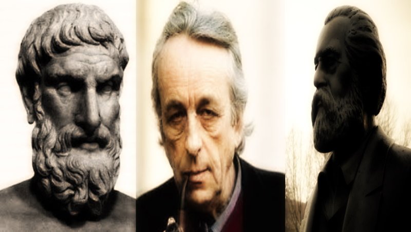 اما همه این حرفها می دانیم بی ربط است و برای نشان دادن تضاد در طبیعت و اجتماع با یک فرضیه نادرست … اما مارکس می گوید حتی فرضیه یا فلسفه نادرست هم اگر اشاره به سویه فعال و تضاد و حرکت باشد پسندیده من است تا بر طرحی که سویه ایی منفعل منجر می شود مارکس در تقابل با ماتریالیسمی که منجمد و خشک اندیش است ترجیعش اپیکور ایده الیست است که در طرح حرکت مستقیم و دافعه اتمها عامل سوم انحراف را مطرح می کند که به قول التوسر ان برخوردهای زنجیره ایی را در جهان مسبب می شود
