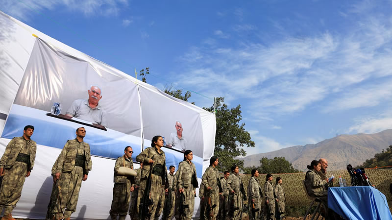 پ.ک.ک در ماه مه گذشته، پس از پیام عبدالله اوجالان، رهبر زندانی خود، تصمیم به خلع سلاح و انحلال رسمی گرفت. در ژوئیه، اعضای این گروه طی مراسمی در شمال عراق، بخشی از سلاحهای خود را بهطور نمادین سوزاندند تا حسن نیت خود را نشان دهند.