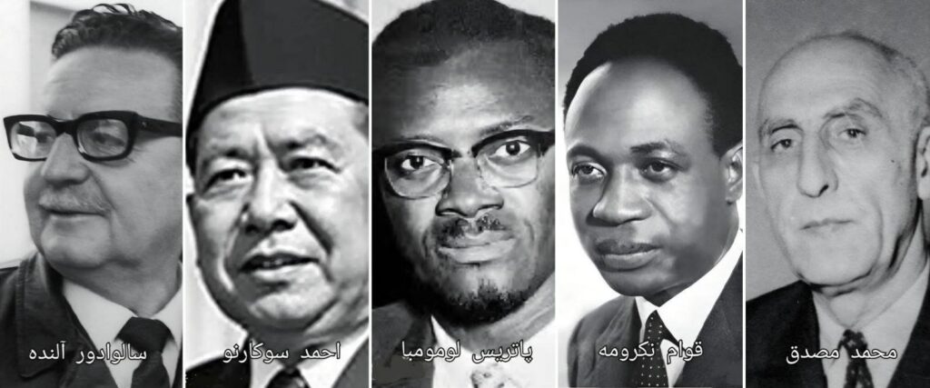 ۲- کودتاها و مداخلات خارجی که پروژههای ملیـدموکراتیک و مستقل را مهار کردهاند، از جمله کودتای ۱۹۵۳ علیه دکتر مصدق در ایران، براندازی کوامی نکرومه در غنا (۱۹۶۶)، کنار زدن احمد سوکارنو در اندونزی (۱۹۶۵–۱۹۶۷) و ترور توماس سانکارا در بورکینافاسو (۱۹۸۷)؛