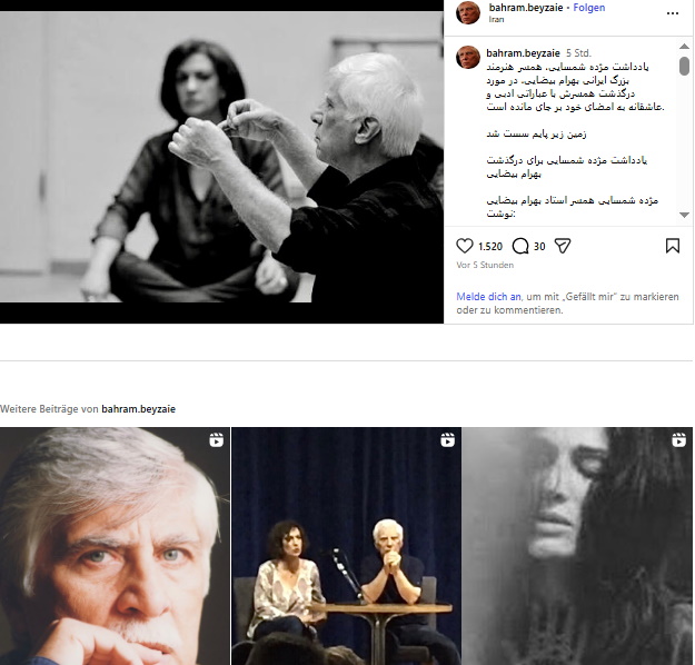 «امروز، آن صدای خسته برای من صدای یک عصر کامل است؛ عصری که با بیضایی فکر کرد و قد کشید. سینمای ایران به او بدهکار است؛ نه فقط برای آثارش، بلکه برای شرافتی که به اندیشه و هنر بخشید. او رفت، اما آنچه ساخت و کاشت، در تصویر، در کلمه و در وجدان ما زنده مانده.»