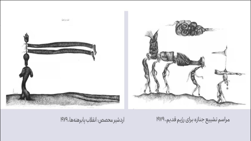 همیشه از نویسندگان، اندیشمندان وحقوقدانانی که در ایام انقلاب زودتر از بقیه توانستند نزول بلای حاکمیت شریعتمدار بر سر مردم را ببینند، سخن به میان آمده، اما کمتر کسی توجهی به شمّ قوی هنرمندان ما در تشخیص حقیقت حوادث روزگار مبذول کرده است. یکی از این هنرمندان بدون تردید اردشیر محصص است. در این یادداشت، دو کار تقریبا همزمان او را در کنار یکدیگر بررسی میکنیم: اثر نخست با تاریخ ۱۹۷۹، عنوان «مراسم تشییع جنازه برای رژیم قدیم» را برخود دارد.