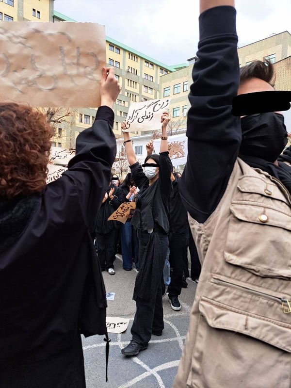 گزارشها همچنین حاکی از تحصن در دانشکده علوم اجتماعی دانشگاه تهران است. گزارش شده که شماری از دانشجویان متحصن در این دانشگاه شعار میدهند: «نه سلطنت، نه رهبری، نه ارتجاع رجوی» و «زن زندگی آزادی».